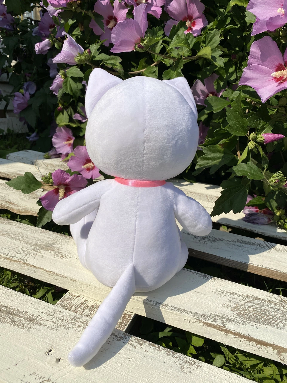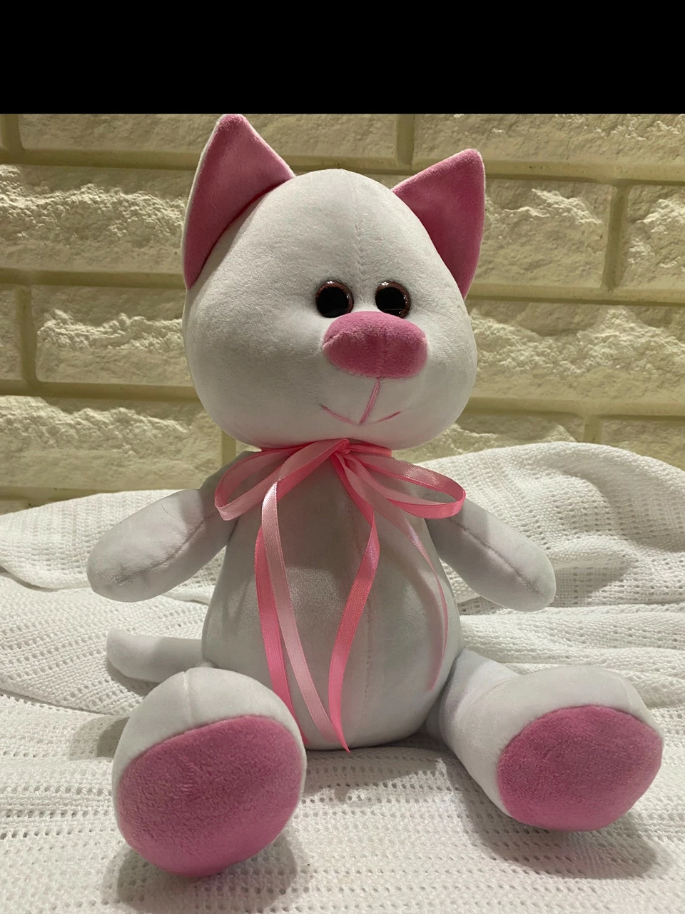 на ощупь. Белого цвета. Размер 33 см.