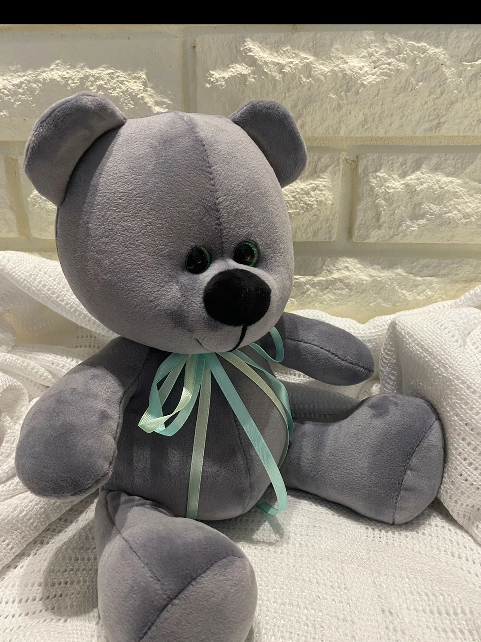 ощупь. Серого цвета. Размер 33 см.